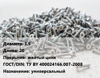 Шуруп 3.5х20 желтый цинк ГОСТ: ТУ BY 400024166.007-2008 универсальный