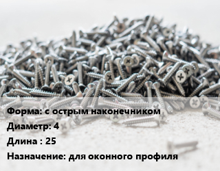 Шуруп с острым наконечником 4х25 для оконного профиля