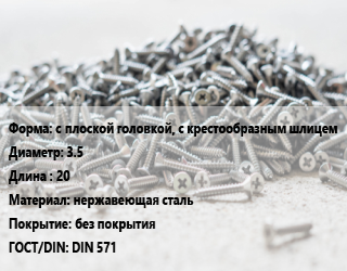 Шуруп с плоской головкой, с крестообразным шлицем 3.5х20 нержавеющая сталь без покрытия ГОСТ: DIN 571