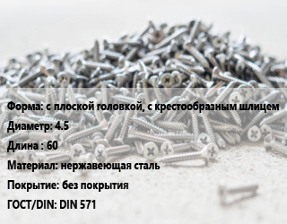 Шуруп с плоской головкой, с крестообразным шлицем 4.5х60 нержавеющая сталь без покрытия ГОСТ: DIN 571