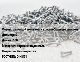 Шуруп с плоской головкой, с крестообразным шлицем 5х100 нержавеющая сталь без покрытия ГОСТ: DIN 571