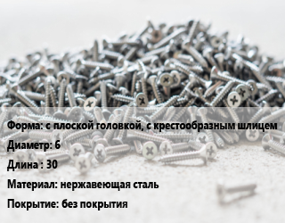Шуруп с плоской головкой, с крестообразным шлицем 6х30 нержавеющая сталь без покрытия