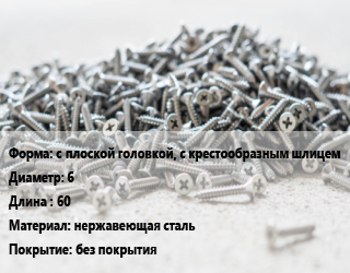 Шуруп с плоской головкой, с крестообразным шлицем 6х60 нержавеющая сталь без покрытия