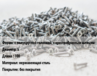 Шуруп с полукруглой головкой, с крестообразным шлицем 5х100 нержавеющая сталь без покрытия