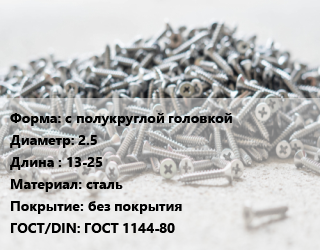 Шуруп с полукруглой головкой 2.5х13-25 сталь без покрытия ГОСТ: ГОСТ 1144-80