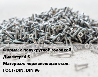 Шуруп с полукруглой головкой 4.5 нержавеющая сталь ГОСТ: DIN 96