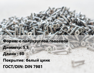 Шуруп с полукруглой головкой 5.5х50 белый цинк ГОСТ: DIN 7981