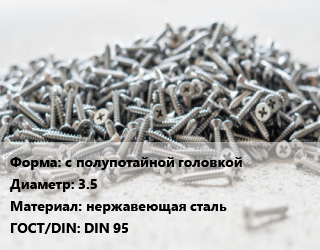 Шуруп с полупотайной головкой 3.5 нержавеющая сталь ГОСТ: DIN 95
