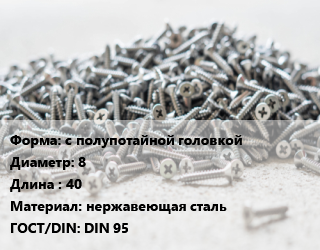 Шуруп с полупотайной головкой 8х40 нержавеющая сталь ГОСТ: DIN 95