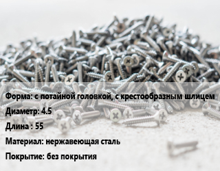 Шуруп с потайной головкой, с крестообразным шлицем 4.5х55 нержавеющая сталь без покрытия