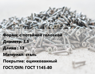 Шуруп с потайной головкой 3.5х13 сталь оцинкованный ГОСТ: ГОСТ 1145-80