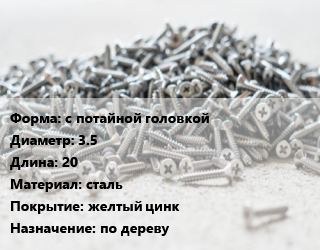 Шуруп с потайной головкой 3.5х20 сталь желтый цинк по дереву