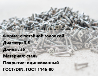 Шуруп с потайной головкой 3.5х35 сталь оцинкованный ГОСТ: ГОСТ 1145-80