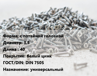 Шуруп с потайной головкой 3.5х40 белый цинк ГОСТ: DIN 7505 универсальный