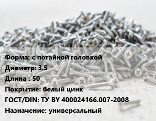 Шуруп с потайной головкой 3.5х50 белый цинк ГОСТ: ТУ BY 400024166.007-2008 универсальный