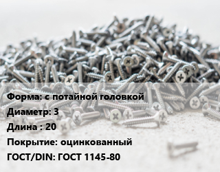 Шуруп с потайной головкой 3х20 оцинкованный ГОСТ: ГОСТ 1145-80
