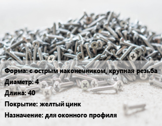 Шуруп с острым наконечником, крупная резьба 4х40 желтый цинк для оконного профиля