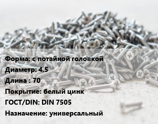 Шуруп с потайной головкой 4.5х70 белый цинк ГОСТ: DIN 7505 универсальный