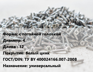 Шуруп с потайной головкой 4х12 белый цинк ГОСТ: ТУ BY 400024166.007-2008 универсальный