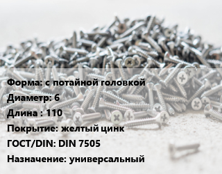 Шуруп с потайной головкой 6х110 желтый цинк ГОСТ: DIN 7505 универсальный