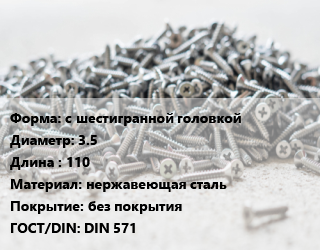 Шуруп с шестигранной головкой 3.5х110 нержавеющая сталь без покрытия ГОСТ: DIN 571