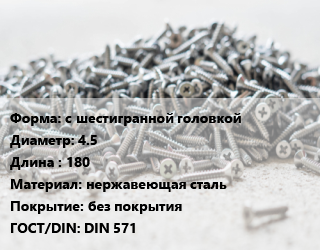 Шуруп с шестигранной головкой 4.5х180 нержавеющая сталь без покрытия ГОСТ: DIN 571