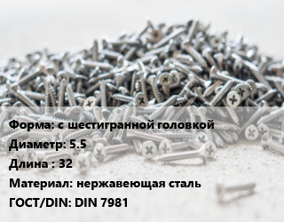 Шуруп с шестигранной головкой 5.5х32 нержавеющая сталь ГОСТ: DIN 7981