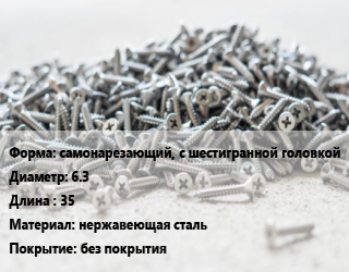 Шуруп самонарезающий, с шестигранной головкой 6.3х35 нержавеющая сталь без покрытия