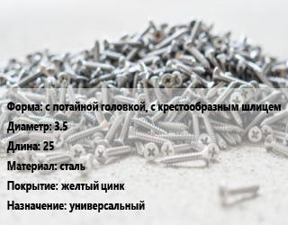 Шуруп с потайной головкой, с крестообразным шлицем 3.5х25 сталь желтый цинк универсальный