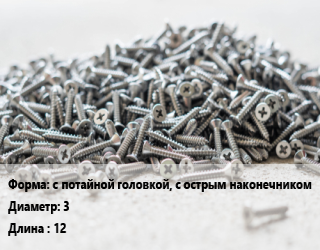 Шуруп с потайной головкой, с острым наконечником 3х12 оцинкованный по дереву