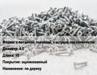 Шуруп с потайной головкой, с острым наконечником 4.5х50 оцинкованный по дереву