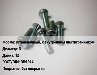 Винт установочный, с внутренним шестигранником 3х12 DIN 914 без покрытия