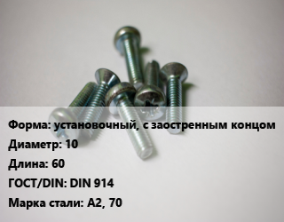 Винт установочный, с заостренным концом 10х60 DIN 914 Сталь: А2, 70
