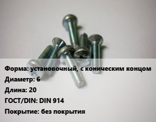 Винт установочный, с коническим концом 6х20 DIN 914 без покрытия