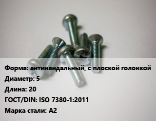 Винт антивандальный, с плоской головкой 5х20 ISO 7380-1:2011 Сталь: А2