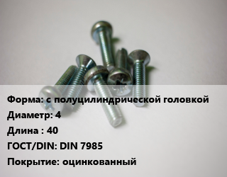 Винт с полуцилиндрической головкой 4х40 DIN 7985 оцинкованный