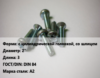 Винт с цилиндрической головкой, со шлицем 2"х3 DIN 84 Сталь: А2