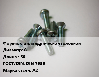 Винт с цилиндрической головкой 8х50 DIN 7985 Сталь: А2