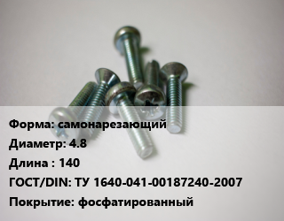 Винт самонарезающий 4.8х140 ТУ 1640-041-00187240-2007 фосфатированный