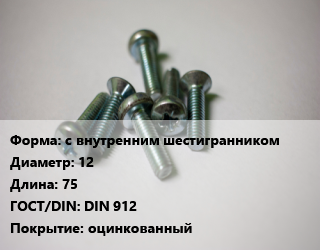 Винт с внутренним шестигранником 12х75 DIN 912 оцинкованный