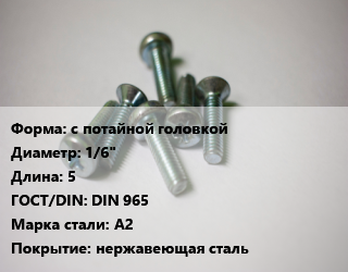 Винт с потайной головкой 1/6"х5 DIN 965 Сталь: А2 нержавеющая сталь