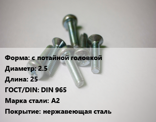 Винт с потайной головкой 2.5х25 DIN 965 Сталь: А2 нержавеющая сталь
