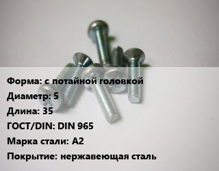 Винт с потайной головкой 5х35 DIN 965 Сталь: А2 нержавеющая сталь