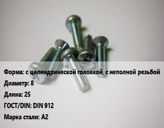Винт с цилиндрической головкой, с неполной резьбой 8х25 DIN 912 Сталь: А2