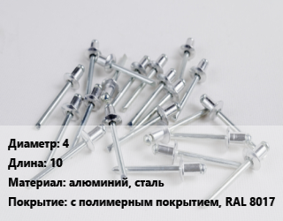 Заклепка 4х10 алюминий, сталь с полимерным покрытием, RAL 8017