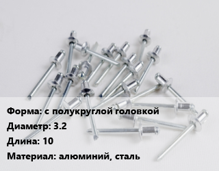 Заклепка с полукруглой головкой 3.2х10 алюминий, сталь, шт, вытяжная, комбинированная, по запросу цена от 130.18 сом / шт, где купить, условия доставки в Бишкеке и Чуйской области