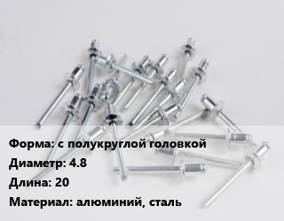 Заклепка с полукруглой головкой 4.8х20 алюминий, сталь