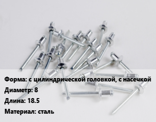 Заклепка с цилиндрической головкой, с насечкой 8х18.5 сталь, шт, резьбовая цена от 5.08 сом / шт, где купить, условия доставки в Бишкеке и Чуйской области