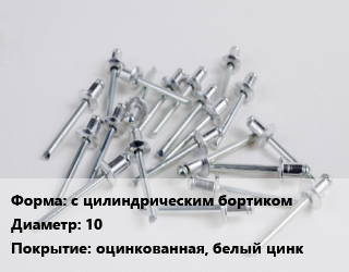 Заклепка с цилиндрическим бортиком 10 оцинкованная, белый цинк