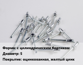 Заклепка с цилиндрическим бортиком 5 оцинкованная, желтый цинк, упаковка 100 шт, с внутренней резьбой цена от 151.16 сом / шт, где купить, условия доставки в Бишкеке и Чуйской области